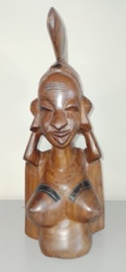 Buste en bois d'acajou sculpté d'une femme peule utilisant un morceau élaboré de tête