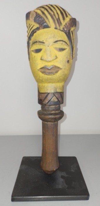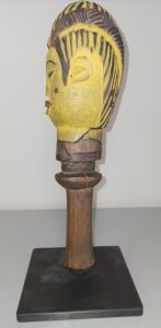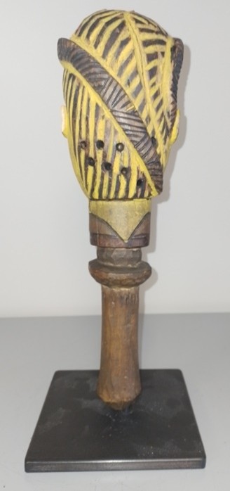 qui représente généralement une tête de Koyo peinte exhibant les scarifications particulières de l'ethnie.